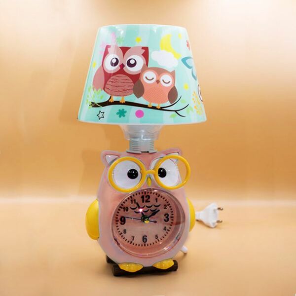 hot dealΠαιδικό Επιτραπέζιο Φωτιστικό με Καπέλο – Πορτατίφ με Ρολόι και Σχέδιο Κουκουβάγια με Γυαλιά Ροζ Ε14