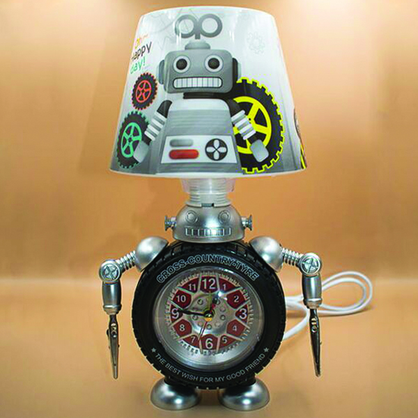 Το παιδικό επιτραπέζιο φωτιστικό – πορτατίφ με ρολόι και σχέδιο ρομπότ αποτελεί την ιδανική προσθήκη στο δωμάτιο κάθε παιδιού, συνδυάζοντας τη λειτουργικότητα ενός φωτιστικού με τη μοναδική αισθητική ενός ρομπότ.