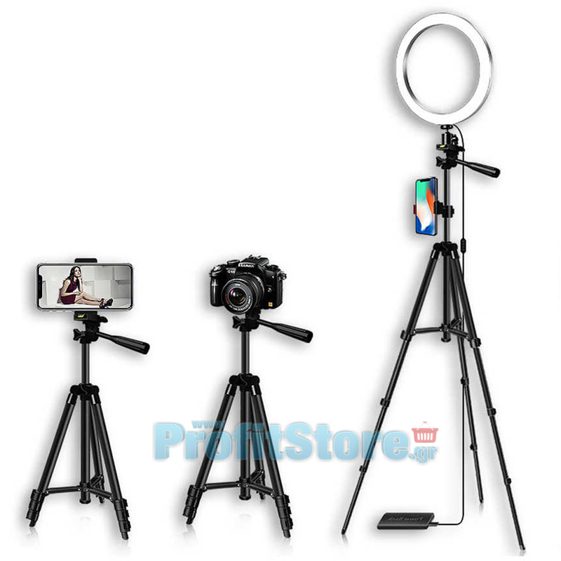 Το απόλυτο σετ για κάθε φωτογράφο, vlogger, youtuber, creator και όχι μόνο! Νέο φωτιστικό φωτογραφικό δαχτυλίδι 26cm με πολυλειτουργικό τηλεσκοπικό τρίποδο με αλφάδι, το οποίο διαθέτει βάση για φωτογραφική κάμερα αλλά και κινητό!