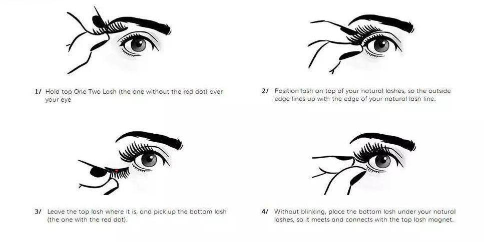 Με σταθερό βλέμμα κοιτώντας ευθεία τοποθετήστε την δεύτερη βλεφαρίδα κάτω από τις δικές σας στο ίδιο ύψος με την πρώτη που εφαρμόσατε από πάνω έτσι ώστε οι δύο μαγνήτες να ενωθούν.