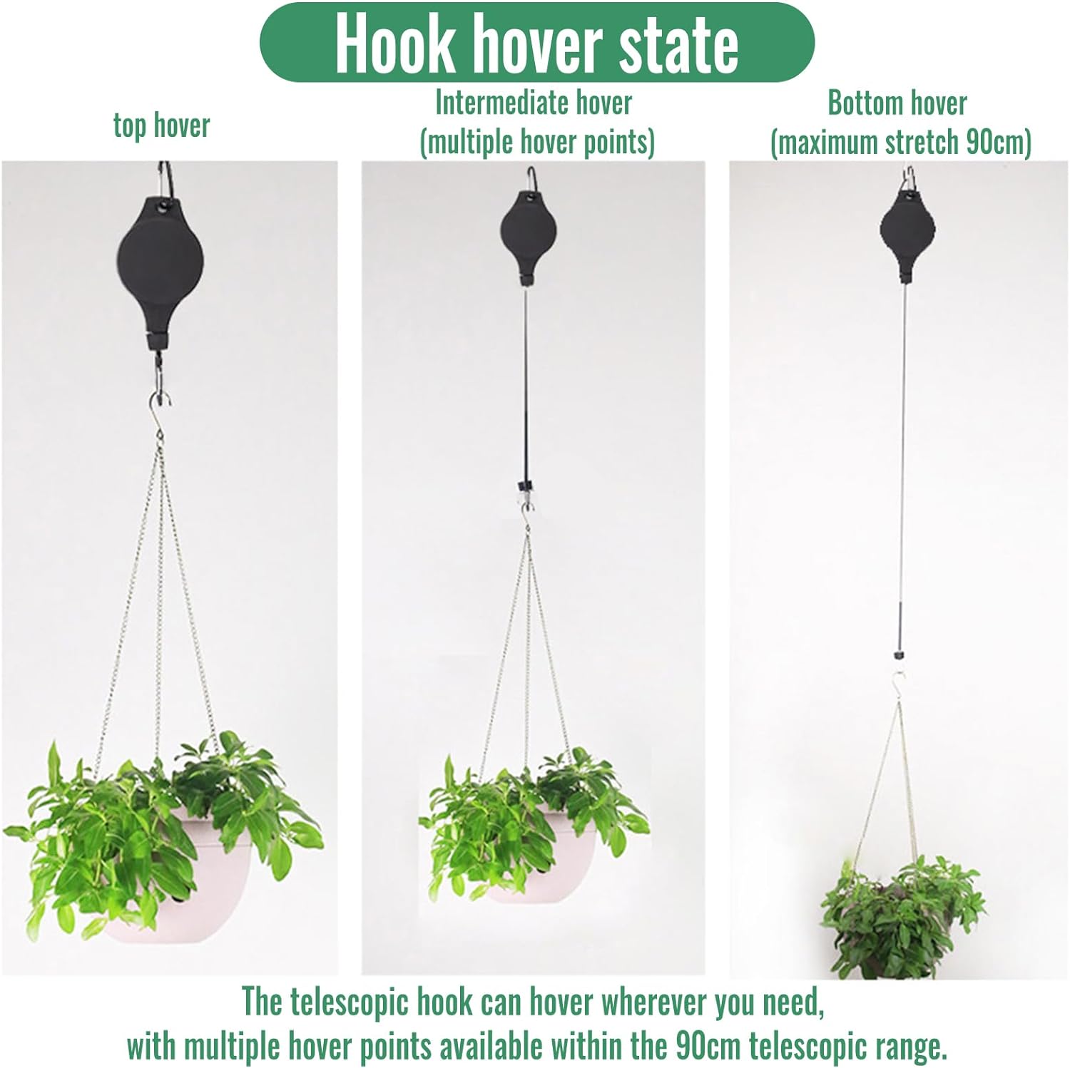 Χάρη στον μηχανισμό της, μπορείτε να τοποθετείτε τις γλάστρες, τα διακοσμητικά σας ή άλλα αντικείμενα στο σημείο που θέλετε και με μία κίνηση να τα κατεβάζετε χωρίς να χρειάζεστε σκάλα.
