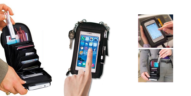 Πρακτικό Τσαντάκι - Θήκη Κινητού και πορτοφόλι. Διαθέτει ειδική θήκη για κινητό, που σας επιτρέπει να χειρίζεστε το κινητό αφής σας, χωρίς να το βγάλετε από τη θήκη!