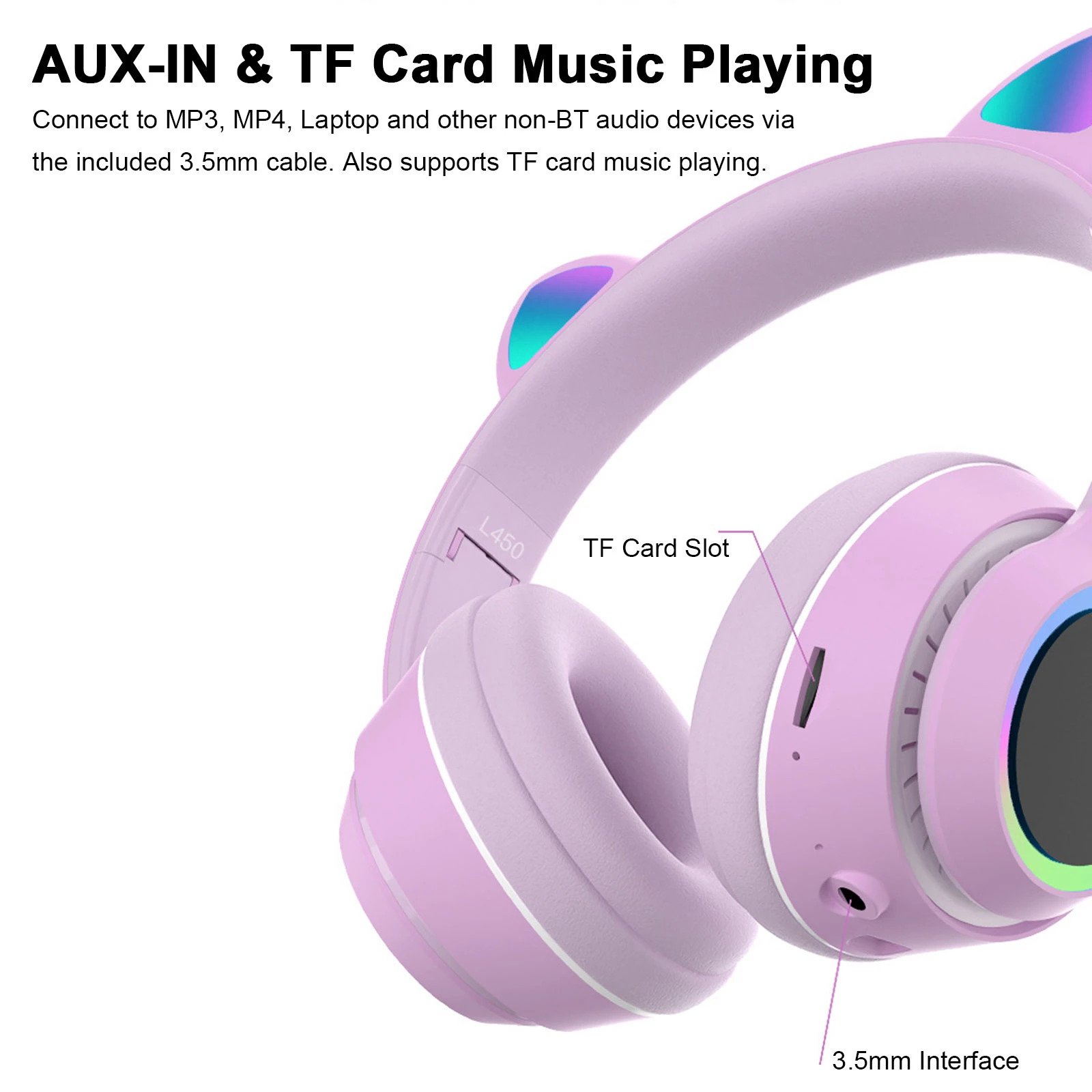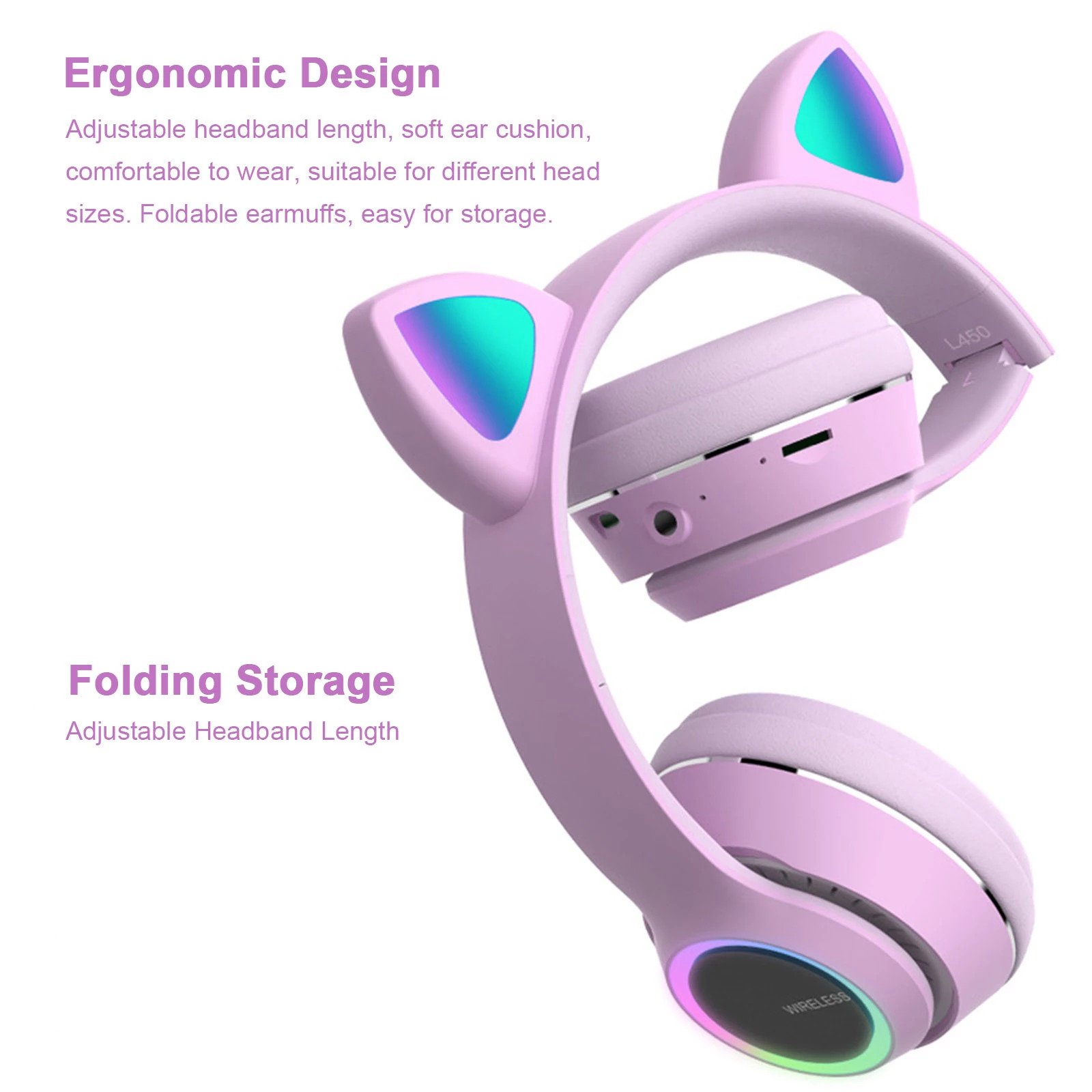 Bluetooth Ασύρματα & Ενσύρματα Ακουστικά Αυτιά Γάτας Αναδιπλούμενα με Πολύχρωμα Φώτα LED RGB σε Διάφορα Χρώματα
