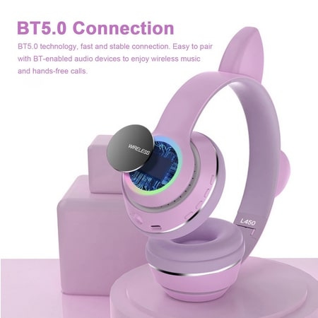 Πρωτοποριακά ακουστικά με χαριτωμένα αυτιά γάτας στο πάνω μέρος που συνδέονται ενσύρματα με 3.5mm jack ή μέσω Bluetooth με το κινητό, το τάμπλετ ή το PC σας.
