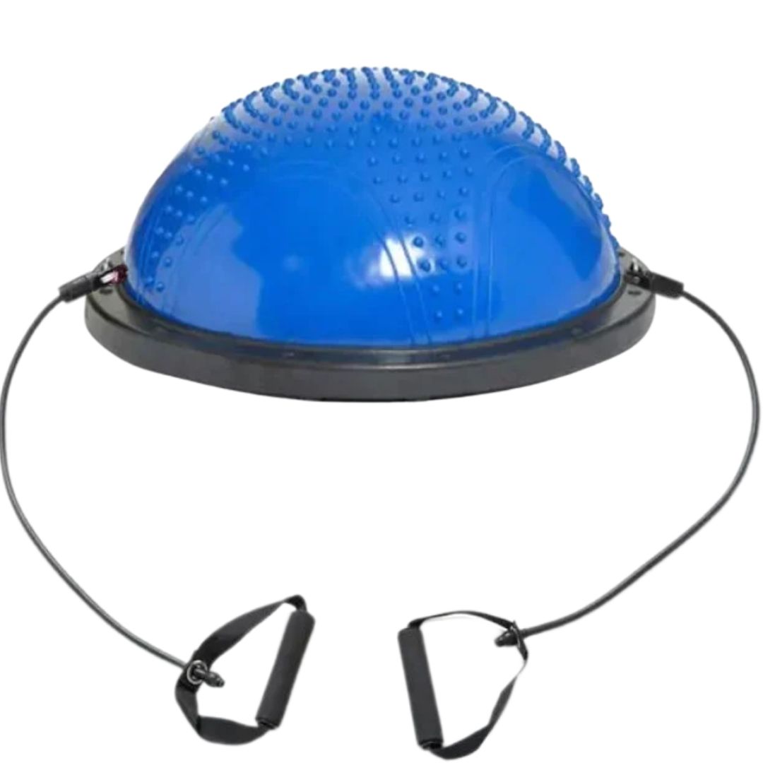 Ανακαλύψτε τη δύναμη της ισορροπίας με την Ημισφαιρική Μπάλα Ισορροπίας με Λάστιχα & Αντλία 58 cm, ιδανική για προπόνηση στο σπίτι ή στο γυμναστήριο.
