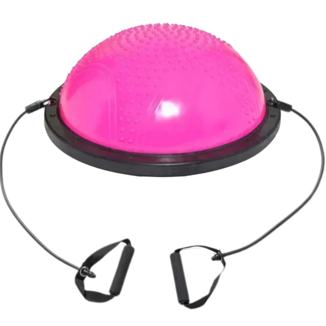 Ανακαλύψτε τη δύναμη της ισορροπίας με την Ημισφαιρική Μπάλα Ισορροπίας με Λάστιχα & Αντλία 58 cm, ιδανική για προπόνηση στο σπίτι ή στο γυμναστήριο.