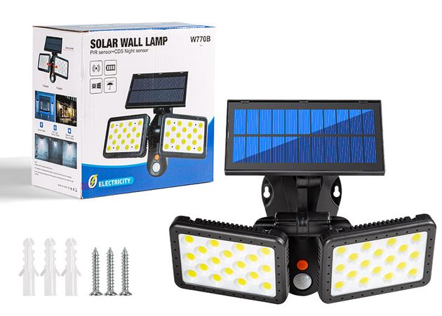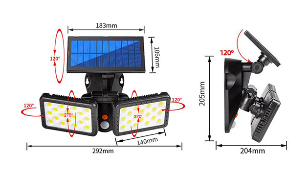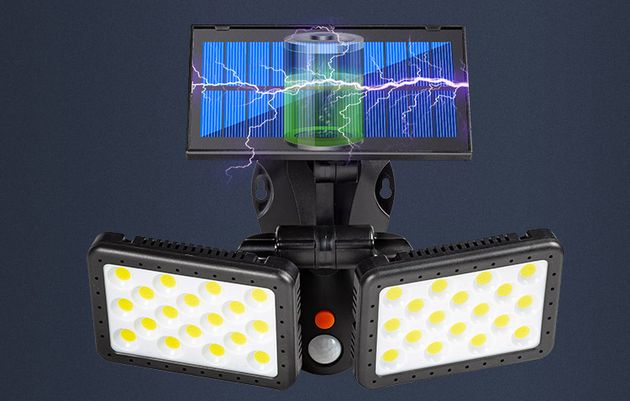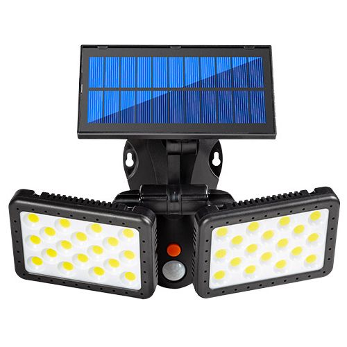 Ο Διπλός Αδιάβροχος Προβολέας Δρόμου με 36 πανίσχυρα LED σας παρέχει την ευελιξία που χρειάζεστε καθώς οι βραχίονες των 2 προβολέων καθώς και του ενσωματωμένου ηλιακού συλλέκτη solar panel περιστρέφονται πλήρως. Διαθέτει αισθητήρα κίνησης και φωτός PIR & CDS Sensors και 3 έξυπνες λειτουργίες φωτισμού.