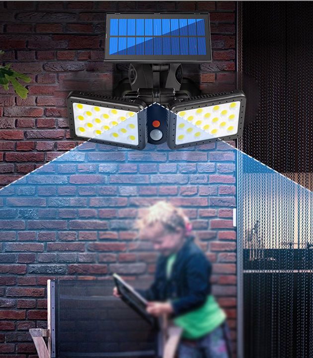 Αδιάβροχος Διπλός Ηλιακός Προβολέας 36 LED Εξωτερικού Χώρου με Περιστρεφόμενους Βραχίονες, 3 Έξυπνες Λειτουργίες Φωτισμού, Αισθητήρα Κίνησης & Φωτός