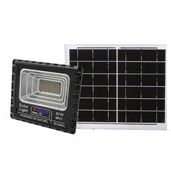 Μοναδικός αυτόνομος ηλιακός προβολέας με φωτοβολταϊκό συλλέκτη που συγκεντρώνει και αποθηκεύει την ηλιακή ενέργεια σε υψηλής ποιότητας επαναφορτιζόμενες μπαταρίες, ενσωματωμένες στο συλλέκτη. Ο προβολέας συνδέεται με το πάνελ με καλώδιο.