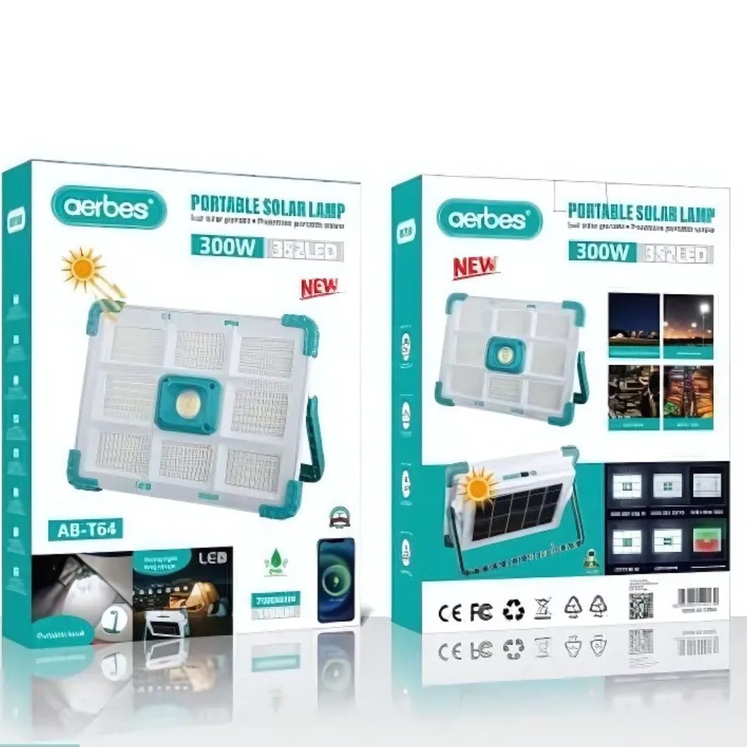 Ο φορητός ηλιακός προβολέας Aerbes 300W είναι η ιδανική λύση για φωτισμό υψηλής απόδοσης σε εξωτερικούς και απομακρυσμένους χώρους.