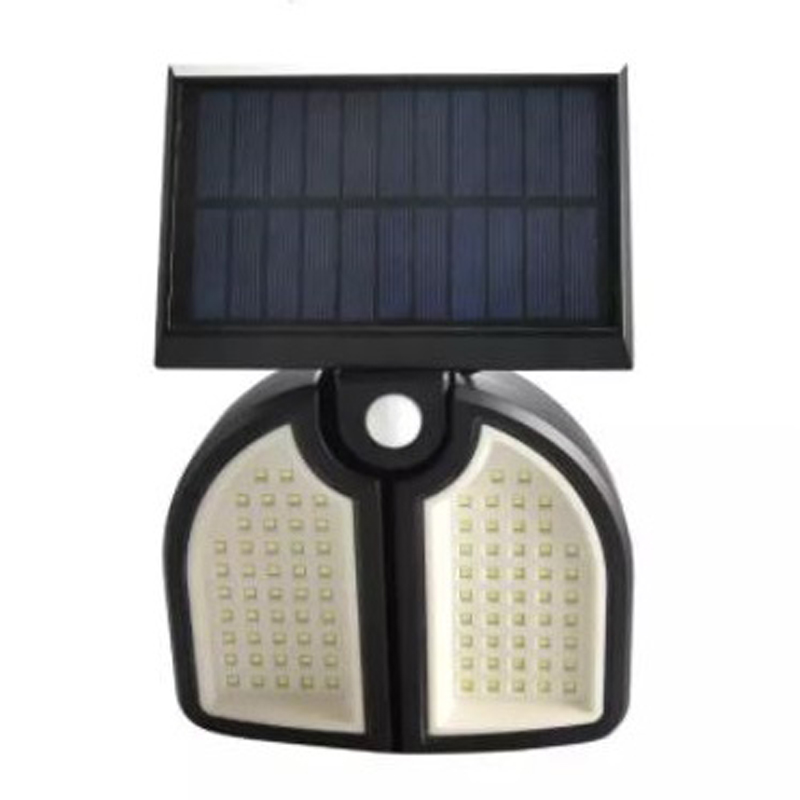 LED ηλιακός προβολέας, που συγκεντρώνει και αποθηκεύει ηλιακή ενέργεια για τη λειτουργία του, ώστε να μη χρειάζεται να συνδεθεί σε παροχή ρεύματος.