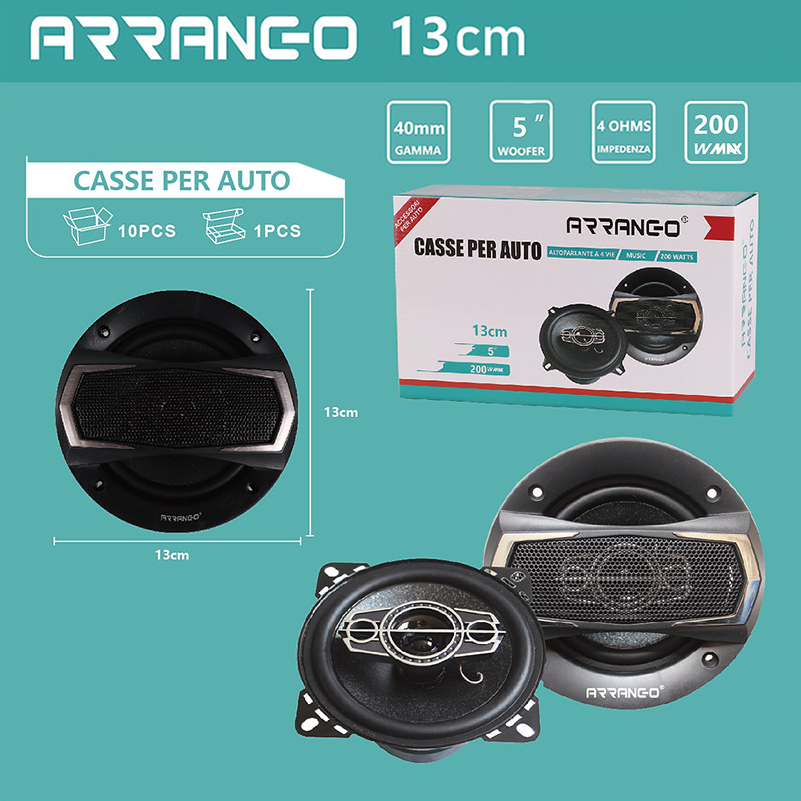 Ζεύγος ομοαξονικών ηχείων της Arranco, 2 δρόμων 10 εκατοστών ισχύος 180 Watt Max. Εξοπλισμένα με κωνικό Woofer 102mm για πλούσια μπάσα και κωνικό Tweeter για καθαρές υψηλές νότες.