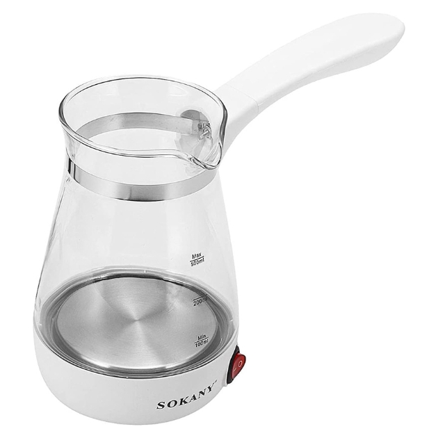 Απολαύστε την αρωματική εμπειρία του φρεσκοψημένου καφέ με το Ηλεκτρικό Γυάλινο Μπρίκι 600W και χωρητικότητας 500 mL της SOKANY.