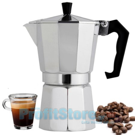 Καφετιέρα Εσπρεσσο για 3 φλυτζάνια. Κατάλληλη για εστία και γκάζι. Με βαλβίδα ασφαλείας.