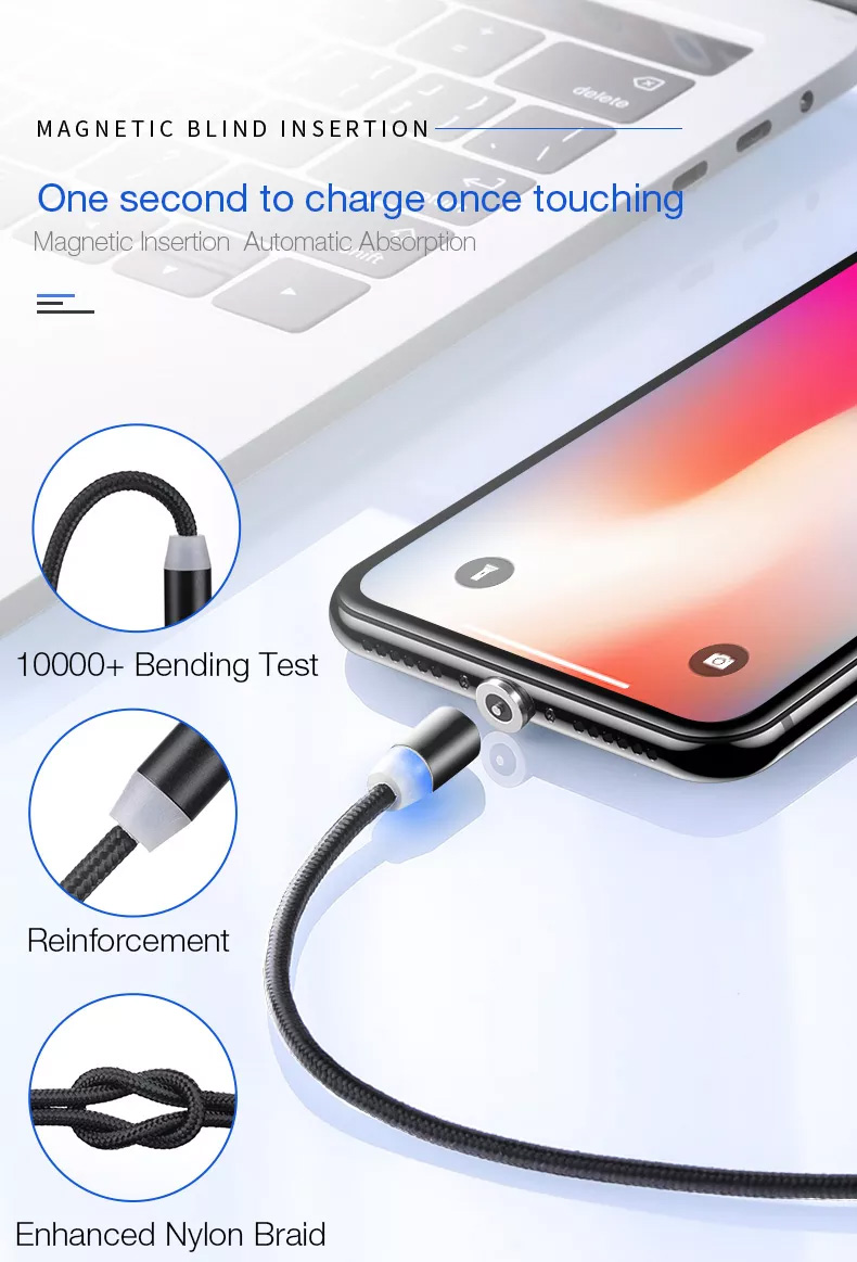 Στην άκρη του καλωδίου βρίσκεται ένας μαγνήτης του οποίου η βάση μπορεί να περιστρέφεται 360°, ο οποίος συνοδεύεται από 3 διαφορετικές μαγνητικές άκρες Lightning, USB-C και MicroUSB.