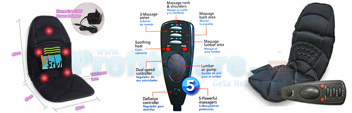 Το κάθισμα μασάζ με πλήρες μέγεθος που καλύπτει όλο το κάθισμα, είναι ιδανικό για χρήση στο αυτοκίνητο, το σπίτι ή στο γραφείο. Χαλαρώνει την ένταση των μυών, βελτιώνει την κυκλοφορία του αίματος, επιδρά ευεργετικά στο αγγειακό σύστημα, ενώ η θερμότητα ενισχύει τα θετικά αποτελέσματα του μασάζ και επιδρά στους εσωτερικούς ιστούς.