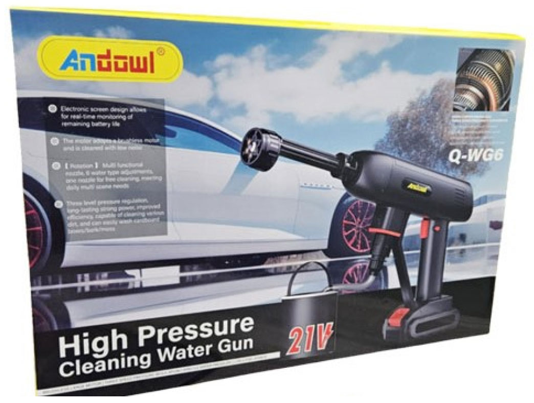Το φορητό πιστόλι υψηλής πίεσης Andowl Q-WG6 προσφέρει ευέλικτο καθαρισμό σε εξωτερικούς χώρους, χωρίς να χρειάζεστε πρίζα — με τροφοδοσία από μπαταρία 21 V.