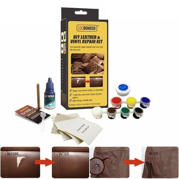Περιλαμβάνονται ειδικά υφάσματα επισκευών και διαφορετικά χρώματα για μίξη κάθε χρώματος ώστε να ταιριάζουν σε πάρα πολλά είδη δέρματος και χρωματισμών. Η χρήση του κιτ είναι σχετικά απλή και εύκολη.