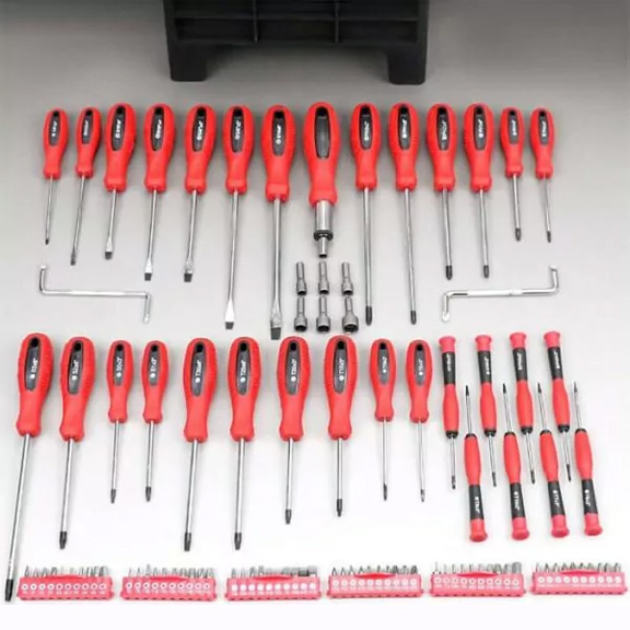 Καινοτόμο σετ με 100 μαγνητικά κατσαβίδια από ανοξείδωτο χάλυβα για μεγάλη αντοχή.