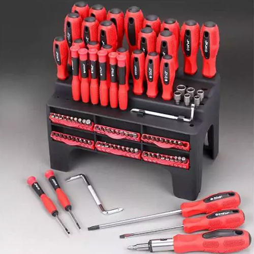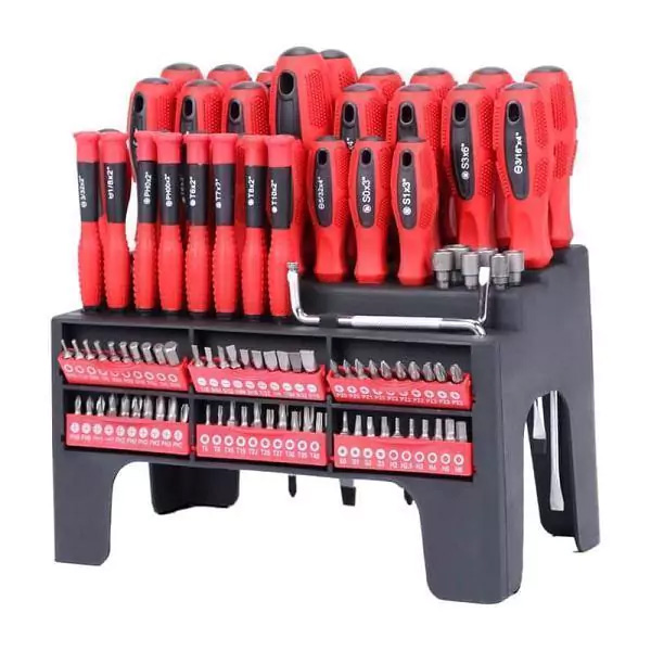 Σετ 100 Μαγνητικών Κατσαβιδιών από Ανοξείδωτο Χάλυβα με Ραφιέρα - Βάση