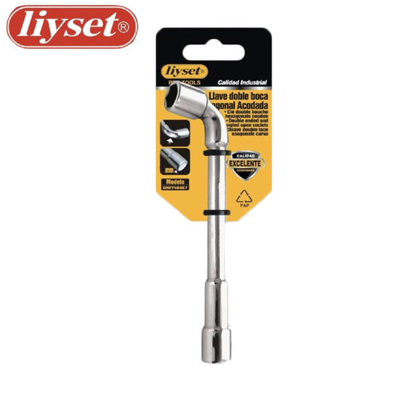 Επιχρωμιωμένο διπλό γωνιακό κλειδί πίπας, με εξάγωνο τελείωμα 15mm.