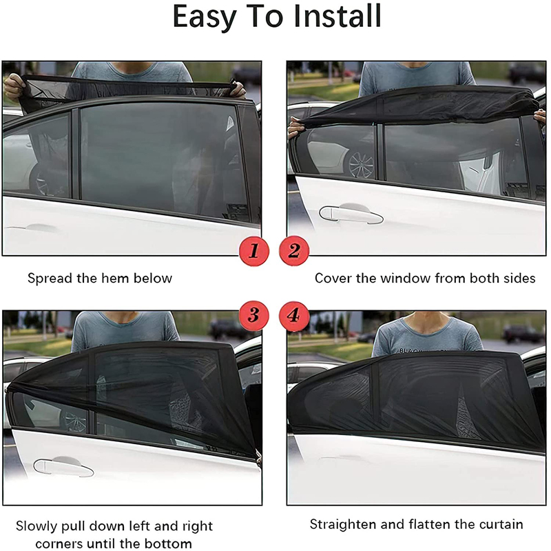 Eίναι κατασκευασμένο από ύφασμα πλέγματος νάιλον υψηλής ελαστικότητας, εύκολο στη χρήση. Δεν χρειάζεται βεντούζα ή κόλλα και καλύπτει πλήρως το παράθυρο του αυτοκινήτου