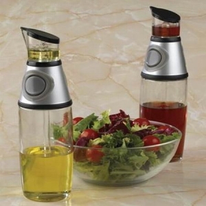 Απλά πιέστε το κουμπί και στις δύο πλευρές του λαιμού και το λάδι ή το ξύδι μεταφέρεται στο δοχείο μέτρησης.