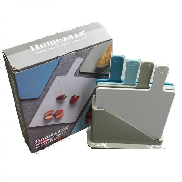 Πλάκες κοπής 4 τεμαχίων με πρακτική βάση αποθήκευσης.