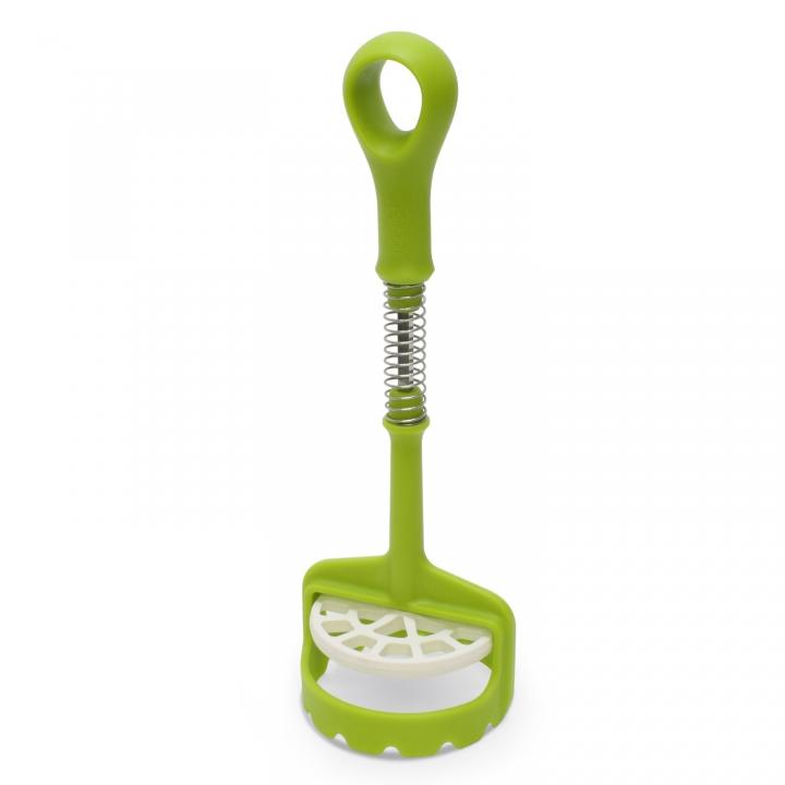 Με ελατήριο που επαναφέρει το κόφτη κάνοντας σύντομότερη την εργασία πολτοποίησης της βραστής πατάτας αλλά και άλλων λαχανικών.