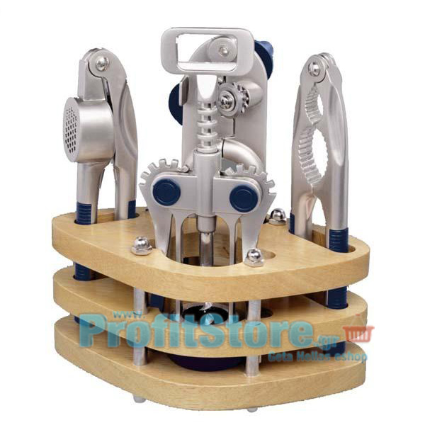 Ένα σετ εργαλείων κουζίνας με ξύλινη βάση σε μοντέρνο design. Όλα τακτοποιημένα σε μια όμορφη, ανθεκτική ξύλινη βάση. Ένα κόσμημα που δεν πρέπει να λείπει από καμία κουζίνα σπιτιού ή επαγγελματικού χώρου.