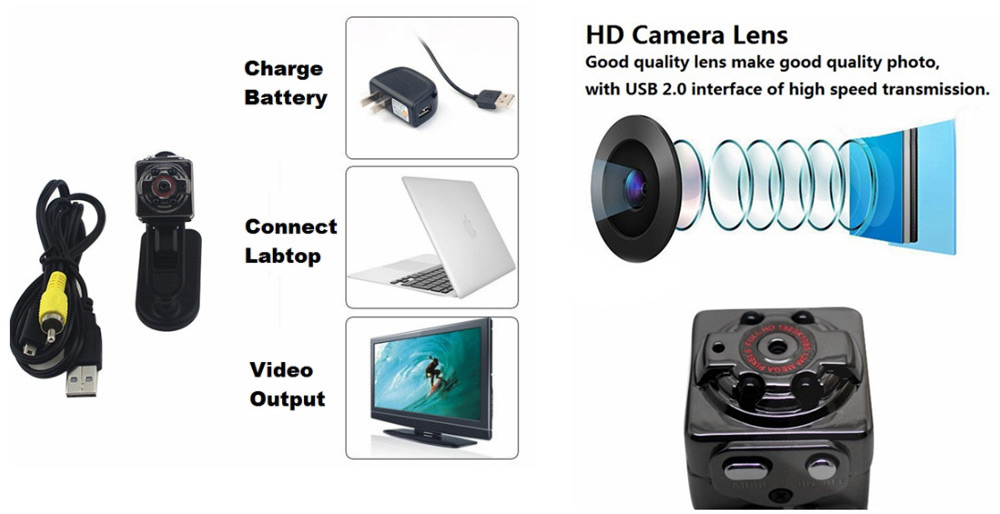 Η συσκευή διαθέτει επαναφορτιζόμενη μπαταρία, και φορτίζετε μέσω USB στο ρεύμα 220 Volt, ή στην θύρα usb του Η/Υ. Η καταγραφή γίνεται σε κάρτα TF χωρητικότητας 2 - 16 gb (δεν εμπεριέχεται).