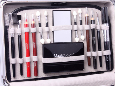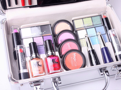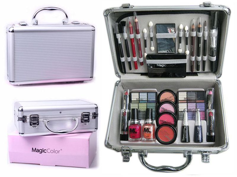 Βαλιτσάκι από αλουμίνιο που περιέχει 52 αξεσουάρ μακιγιάζ για τα μάτια, τα χείλη, το πρόσωπο και τα νύχια