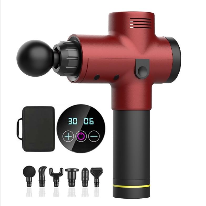 Επαγγελματική Συσκευή Αθλητικού Μασάζ Δονήσεων Ανάκαμψης & Αποκατάστασης με 6 Κεφαλές, 30 Ταχύτητες & Οθόνη Αφής - Fascial Gun Κόκκινο