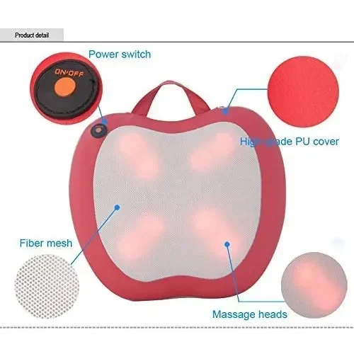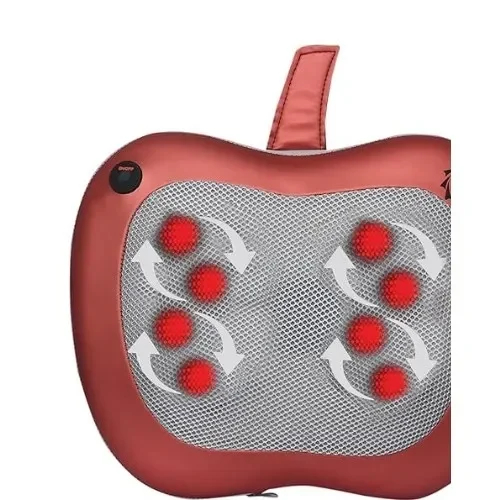 Το ηλεκτρικό μαξιλάρι μασάζ Car & Home Intelligent Massage Cushion σε κόκκινο χρώμα προσφέρει ανακούφιση από πόνους στη μέση και τον αυχένα, ιδανικό για χρήση στο σπίτι ή το αυτοκίνητο.