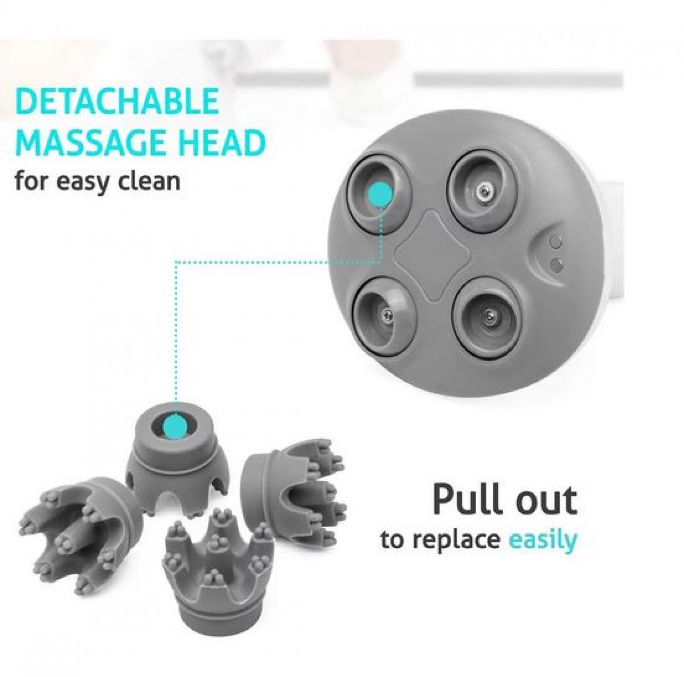 Η φορητή εργονομική συσκευή μασάζ αυτή, είναι επαναφορτιζόμενη με 4 περιστροφικές κεφαλές - βούρτσες και προσφέρει ολοκληρωμένο & βαθύ μασάζ τύπου Shiatsu σε όλο το μήκος του κεφαλιού αλλά και του σώματος.