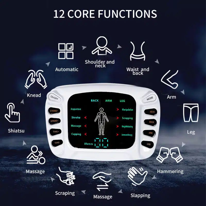 Χρήσιμη συσκευή για συμπτώματα ίωσης, γαστραλγίας, δυσκοιλιότητας, υπέρτασης, ρευματική αρθρίτιδας, στραβολαίμιασμα, σύμπτωμα πόνου, οσφυαλγίας, κλπ. για κάθε περίπτωση στο εγχειρίδιο αναφέρεται και τρόποι θεραπείας αλλά και σε ποια σημεία χρειάζεται να χρησιμοποιήσετε την συσκευή!