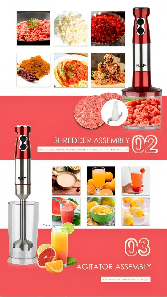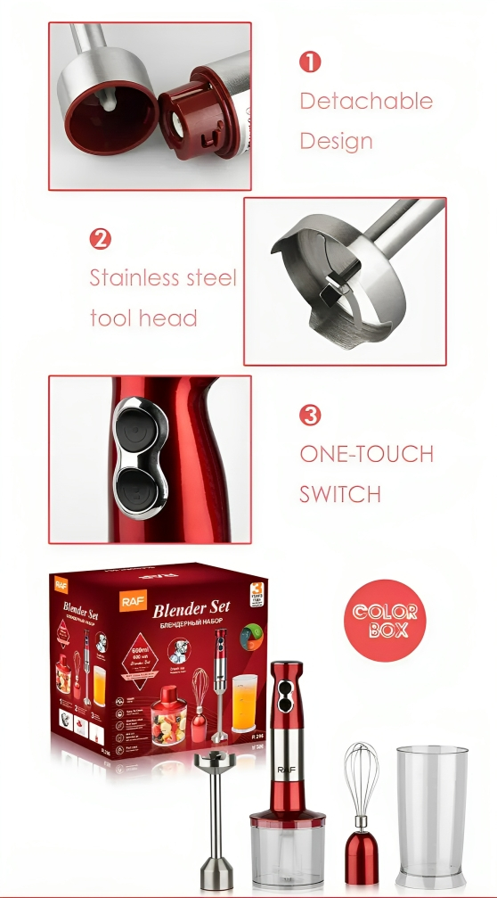 Το ραβδομπλέντερ Raf R-296 είναι μια ισχυρή και κομψή συσκευή κουζίνας, σχεδιασμένη για να διευκολύνει την προετοιμασία διαφόρων συνταγών.