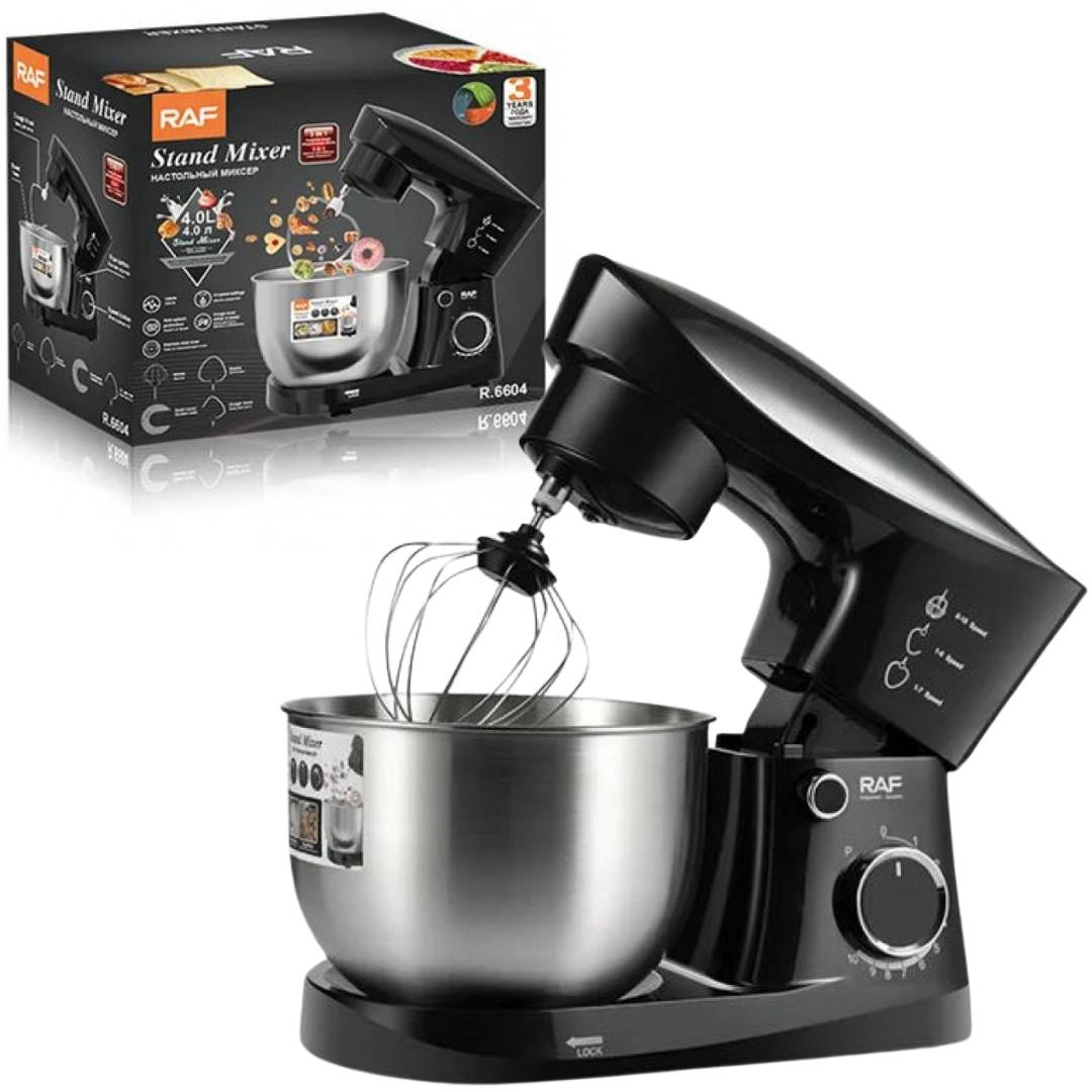 Με κομψό μαύρο design και ανθεκτική κατασκευή από ανοξείδωτο ατσάλι και ABS, το μίξερ RAF είναι ιδανικό για κάθε σύγχρονη κουζίνα.