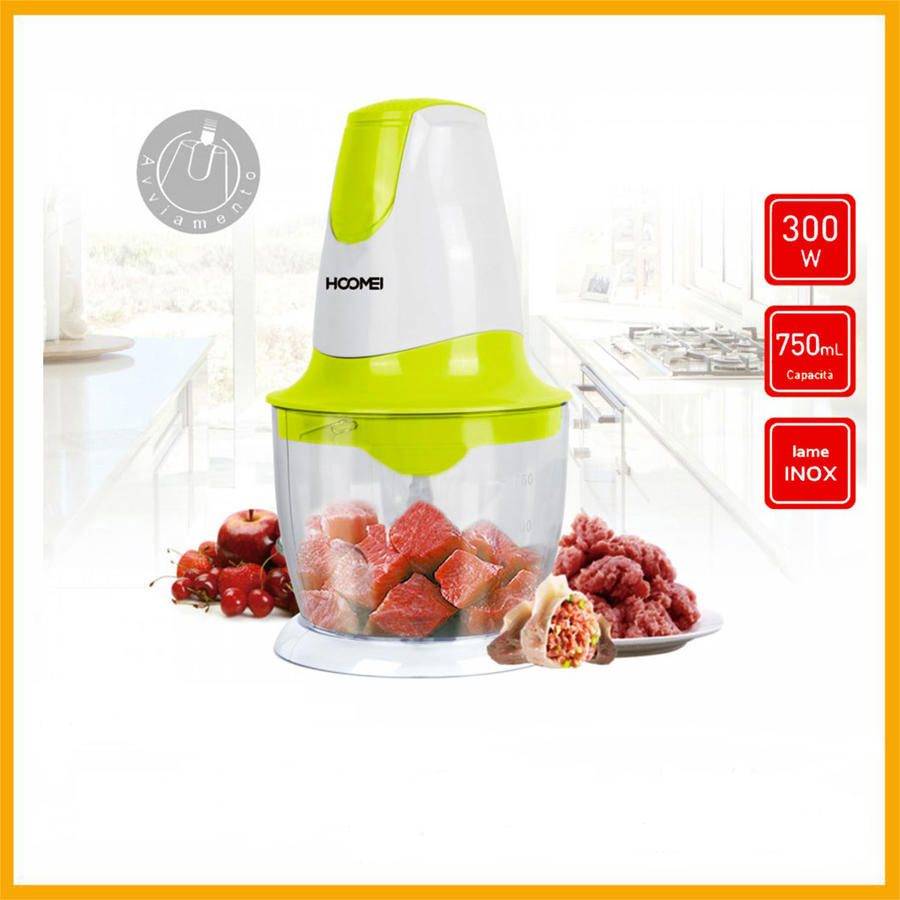 Ο ισχυρός κινητήρας 300W αυτού του πολυκόπτη της Hoomei®, προσφέρει ατελείωτες επιλογές για γρήγορη κοπή, ανάμειξη και ομογενοποίηση.