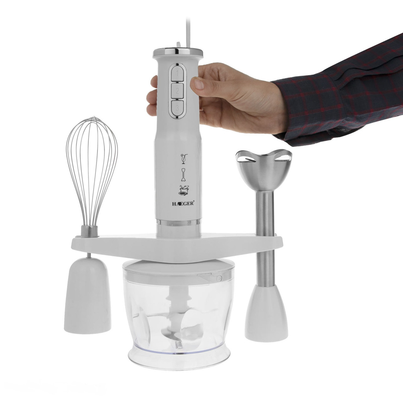 Ραβδομπλέντερ HG-291W, της εταιρείας Haeger, με ισχύ 600 Watt. Με το ραβδομπλέντερ θα μπορέσετε να πολτοποιήσετε τρόφιμα για παιδικές τροφές, να ομογενοποιήσετε σάλτσες, να φτιάξετε σπιτική μαγιονέζα, να δημιουργήσετε smoothies από οποιοδήποτε φρούτο επιθυμείτε ή ακόμα και να ετοιμάσετε σούπες.