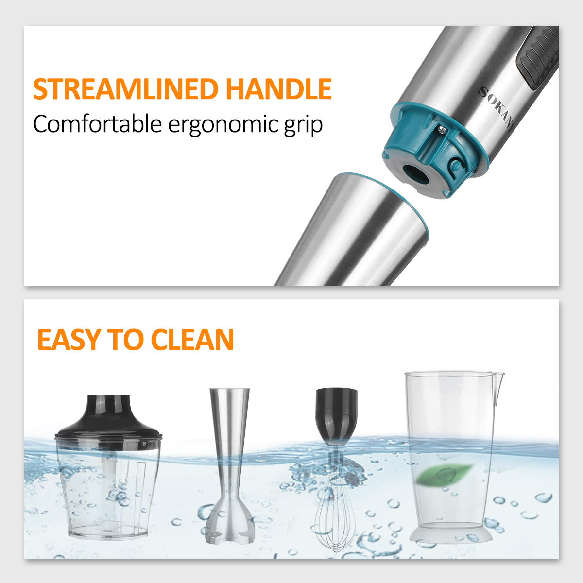 Είναι πολύ πρακτικό, εύχρηστο και καταλαμβάνει λιγότερο χώρο, σε σχέση με ένα επιτραπέζιο μπλέντερ. Μεγάλο του πλεονέκτημα αποτελεί το γεγονός ότι μπορείτε να επεξεργάζεστε τα υλικά σας μέσα σε οποιοδήποτε σκεύος, χωρίς να χρειάζεται να τα μεταφέρετε και να συσσωρεύονται στην κουζίνα σας διαρκώς άπλυτα σκεύη.