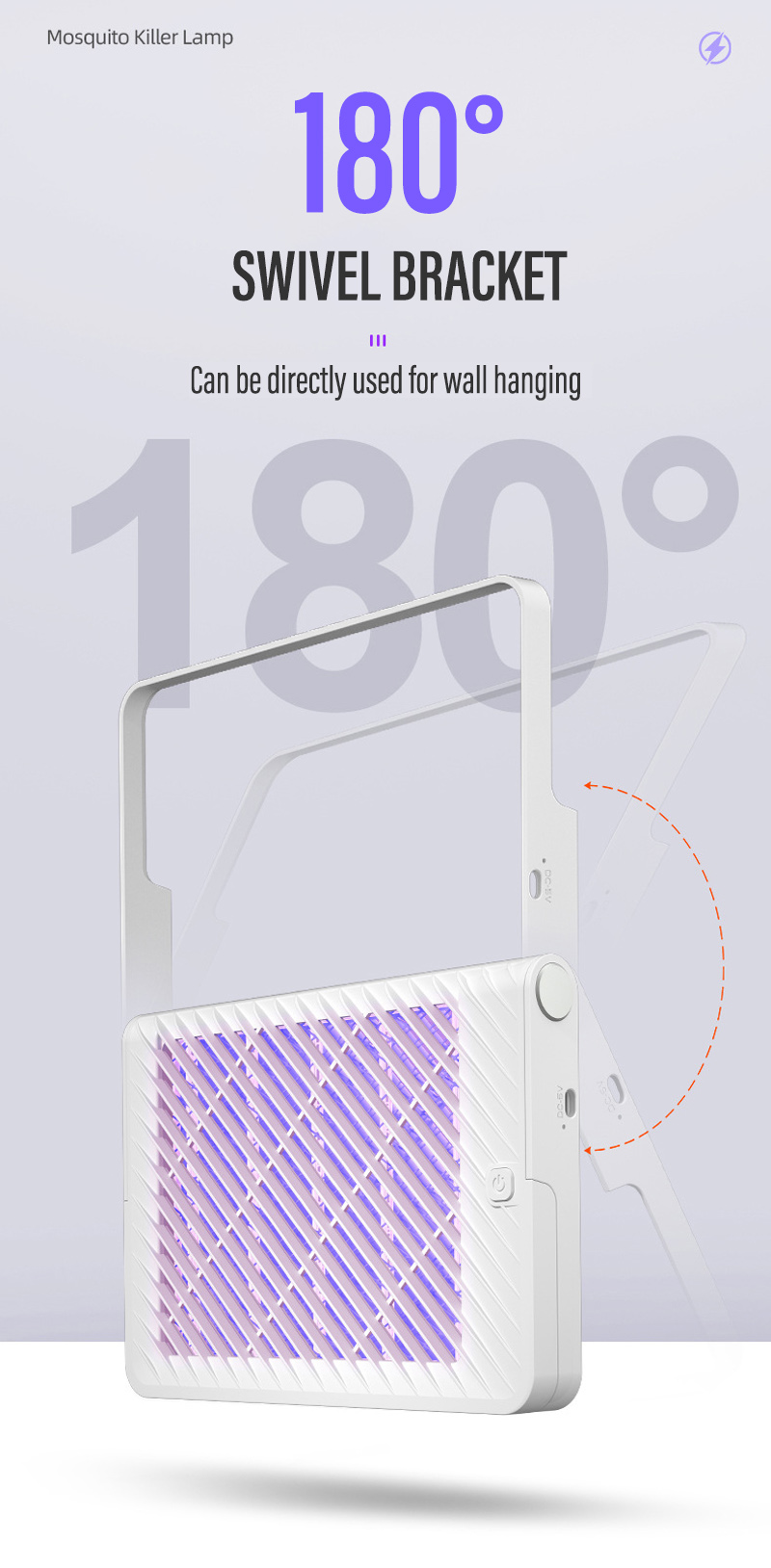 Νέας Γενιάς Φορητό Ηλεκτρικό Εντομοκτόνο με Μπαταρία Επαναφορτιζόμενη Επιτοίχιος & Επιτραπέζιος έως 30τμ Μωβ UV LED - Εξολοθρευτής Κουνουπιών - Εντόμων USB Led Light Mosquito Killer Pest