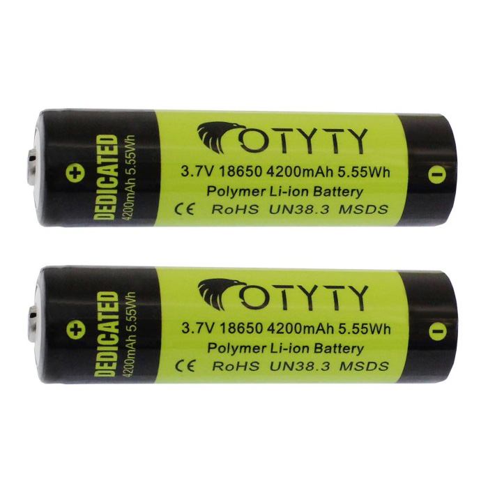 Ζευγάρι με Οικονομική επαναφορτιζόμενη μπαταρία Li-Ion 18650 3,7V 4200mAh κατάλληλη για όλους τους επαναφορτιζόμενους φακούς LED αλλά και άλλες συσκευές που χρησιμοποιούν αντίστοιχες μπαταρίες. Δύο τεμάχια.