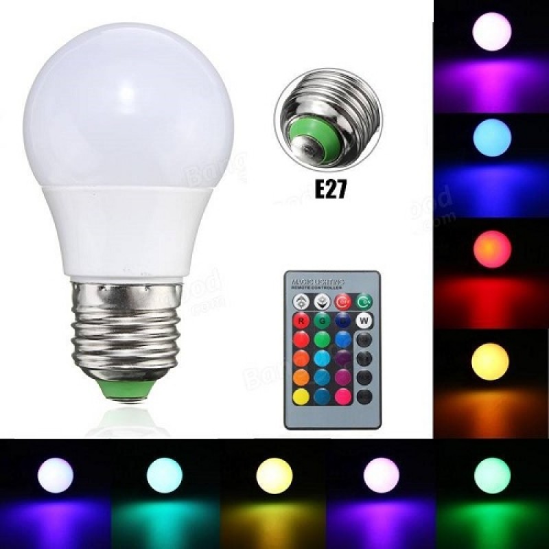 RGB Led Λάμπα Ε27 με λεπτό σπείρωμα, για εξοικονόμηση ενέργειας και ατμοσφαιρικό φωτισμό μαζί με ασύρματο τηλεχειριστήριο για αυτόματη εναλλαγή άπειρων αποχρώσεων.