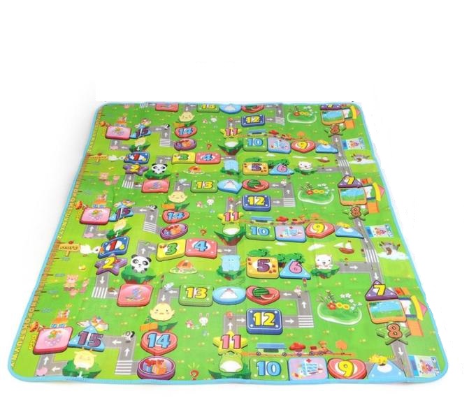 Το Playmat διπλής όψης έχει χαρούμενες παραστάσεις και διάσπαρτα τα νούμερα εώς το 20 και η άλλη μεριά έχει τα γράμματα της Αγγλικής αλφαβήτου ή χαρούμενες παραστάσεις.