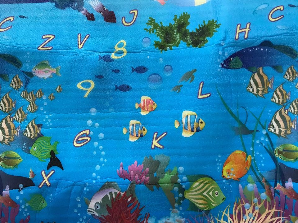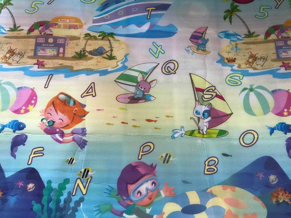 Το Playmat διπλής όψης έχει χαρούμενες παραστάσεις και τα γράμματα της Αγγλικής αλφαβήτου.