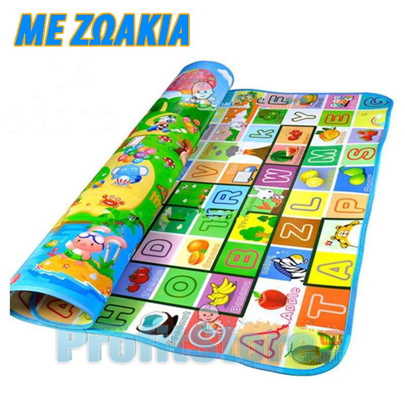 Το Playmat διπλής όψης έχει χαρούμενες παραστάσεις με ζωάκια και τα ονόματά τους στα αγγλικά και τα γράμματα της Αγγλικής αλφαβήτου.