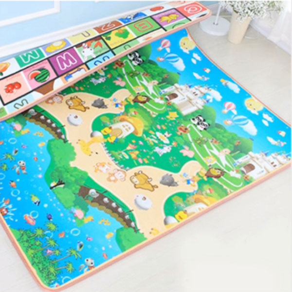 Το Playmat διπλής όψης έχει χαρούμενες παραστάσεις και διάσπαρτα νούμερα και γράμματα.