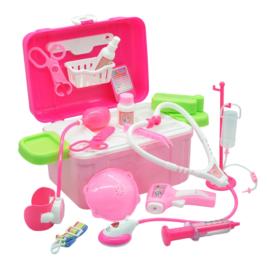 Το παιδικό βαλιτσάκι γιατρού σε ροζ απόχρωση είναι ένα διασκεδαστικό και δημιουργικό σετ παιχνιδιού ρόλων που επιτρέπει στα παιδιά να γίνουν μικροί γιατροί και να εξετάζουν φίλους, γονείς ή αγαπημένα παιχνίδια.