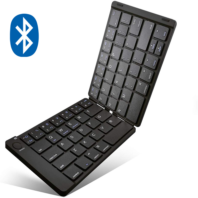 Μίνι φορητό επαναφορτιζόμενο πληκτρολόγιο τσέπης, που διπλώνει, για ασύρματη σύνδεση και χειρισμό διαφόρων συσκευών, με μαγνητικό κλείσιμο για αν μην ανοίγει. Είναι εξαιρετικά μικρών διαστάσεων και ελαφρύ για να χωράει πραγματικά στην τσέπη σας!